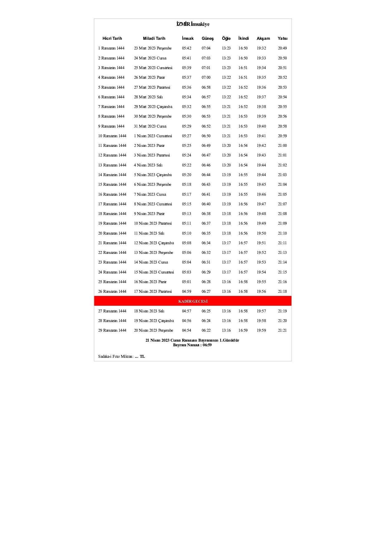 İZMİR İÇİN İFTAR VAKTİ...