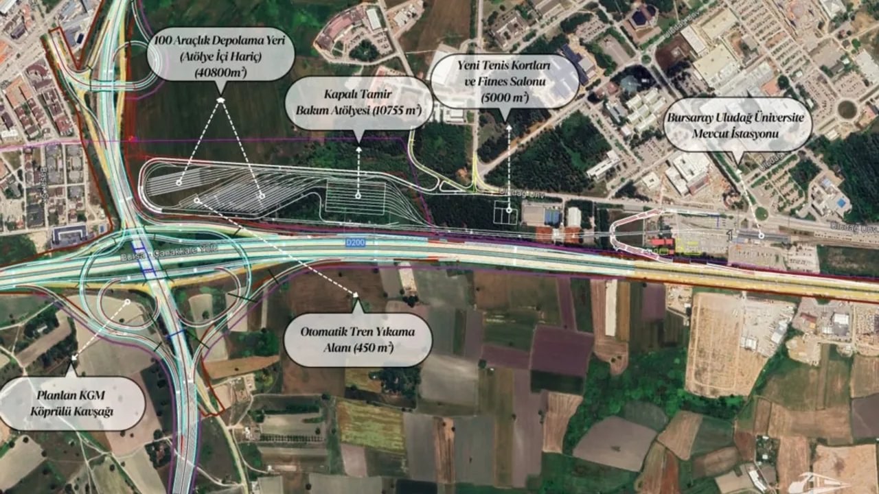 BURSA (İGFA) - Çalışmalar kapsamında yapılacak 1,2 kilometrelik Görükle uzatması ile birlikte Depo Sahası Ulaşım Hattı, 22 araçlık parklanma hattı, idari binalar, araç ve hat bakım atölyesi ile araç yıkama hattı ünitesi gibi tesislerin inşası da planlandı. Tesisler, tüm raylı sistem araçlarının bakım, onarım ve işletme süreçlerini bütüncül biçimde yürütecek altyapıyı oluşturacak.