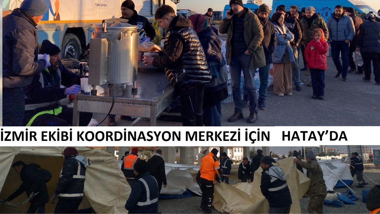 İzmir Büyükşehir Belediye Başkanı Tunç Soyer'in talimatıyla afet bölgelerinde koordinasyon merkezleri kurmak için İzmir’den yola çıkan ekipler Hatay’a ulaştı. Teknik ekip afet bölgesinin en öncelikli ihtiyacı olan barınma sorunun çözmek için seferberlik başlattı. Genişletilen ve zemini sağlamlaştırılan çadır alanında bölgeye gönderilen yeni çadırlar kuruldu. İzmir Büyükşehir Belediyesi’nin alana ulaşan teknik kadrosu, sağlıklı bir yaşam alanının oluşması için ısınma, su, enerji gibi altyapı çalışmalarını sürdürüyor. Günde 10 bin kişilik yemek üreten mobil mutfak hizmete devam ederken alana mobil tuvaletler kuruldu. Bölgeye ulaşan İzmir Büyükşehir Belediyesi Zabıtası, öncelikli olarak çadır kente yerleştirilen yurttaşların güvenliğini sağlıyor ve çadır kurulumuna destek oluyor.