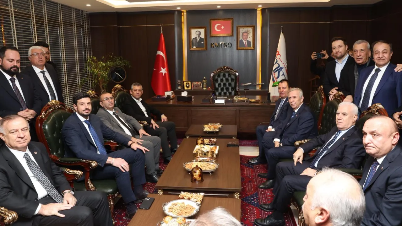 CHP Genel Başkanı Özgür Özel, Bursa Büyükşehir Belediye Başkanı Mustafa Bozbey ve beraberindekiler daha sonra Kahramanmaraş Ticaret ve Sanayi Odası'nı ziyaret etti.