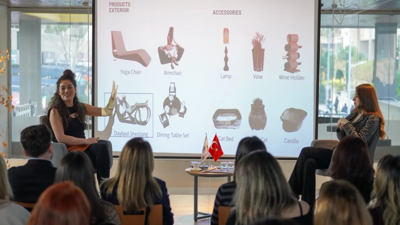 Dilek Bartın, programda geri dönüştürülmüş malzemelerden özel kompozit üretim sürecini anlatarak, bu malzemeleri yeni bir geleceğin parçası haline getiren çalışmalarını paylaştı. Betül Karaca ise 3D yazıcı teknolojisiyle tasarımı ürüne ve mekâna dönüştürdüğü büyük ölçekli mobilya üretim örneklerini katılımcılara aktardı.
