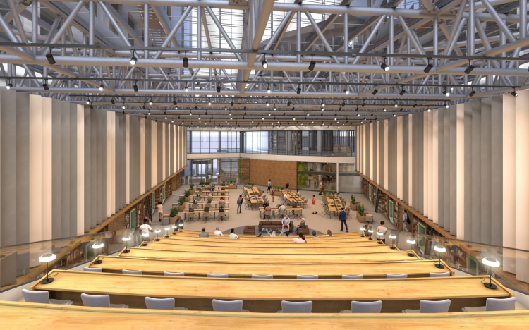 Kütüphane amfi, seminer salonları, öğrenci işleri, serbest çalışma alanları, bilgisayarlı çalışma masaları, öğrencilere hizmet verecek kafeterya yer alacak. Kütüphane, özel bir yazılım sistemi ile öğrencilere hizmet verecek. Kütüphane bünyesinde 96 sandalye kapasiteli ve 240 metrekare büyüklüğünde modern bir kafeterya yer alacak. Modern ve çok amaçlı olarak planlanan kütüphanede 460 kişilik serbest çalışma alanı, 95 kişilik bilgisayarlı çalışma alanı, 100 kişilik amfi alanı, 60 kişilik seminer salonu, 96 kişilik kafeterya alanı bulunuyor. Kütüphane, aynı anda 815 kişinin kullanımına imkân sağlayacak şekilde tasarlandı.