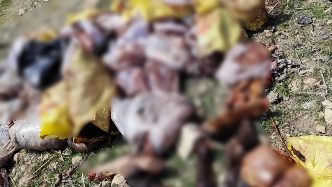Vatandaşların ihbarı üzerine olay yerine gelen Jandarma boş arazide çuvallar içinde bulunan eşek eti atıklarına el koydu.