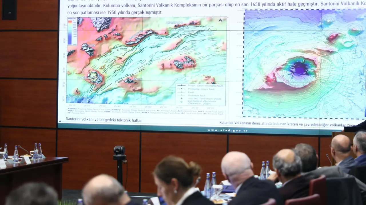 Ege Denizi Santorini Adası ve civarında 28 Ocak 2025 tarihinden itibaren görülen sismik aktivite sonucu meydana gelebilecek muhtemel daha büyük bir deprem, tsunami veya bir volkanik patlamanın ülkemiz kıyıları için oluşturabileceği tehlikeler, alınan önlem ve hazırlıklar AFAD, MTA, Meteoroloji Genel Müdürlüğü, Kandilli Rasathanesi ve Deprem Araştırma Enstitüsü, uzman bilim insanları ve araştırmacılarla değerlendirildi.